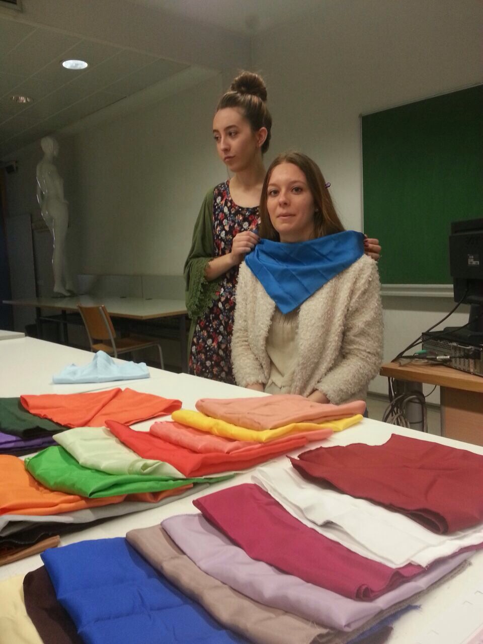 Las siguientes fotos fueron realizadas a los alumnos de Estilismo de la EASD. Durante esta clase, utilizaron el kit de pañuelos para conocer su armonía de color, según sus características físicas (color de pelo, ojos y piel).