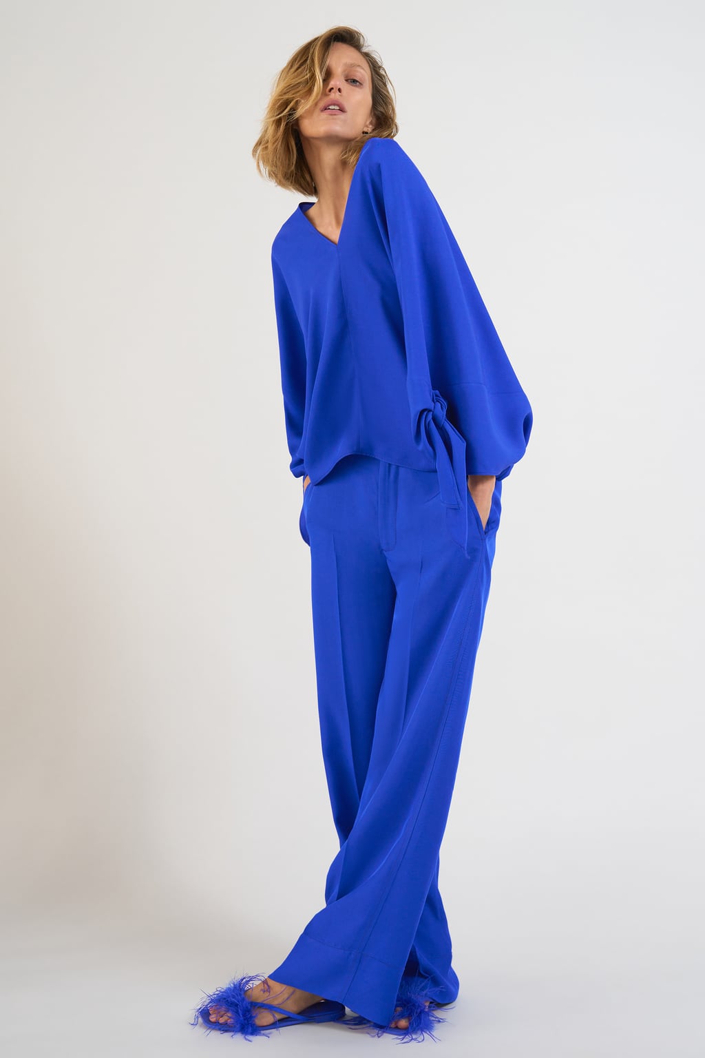 Estamos acostumbrados a asociar el color azul a tonos cielo y marino, pero en cambio esta temporada se ha utilizado un color más eléctrico y enérgico, nombrándolo así el tono azul eléctrico. Resultando un tono que destaca por si solo sin tener que combinarlo con otro color opuesto, sino que, juega con los colores neutro para mantener una estabilidad. Una de las prendas mas utilizadas es el pantalón Palazzo, aquí con nosotros te ofrecemos el curso para poderte realizar uno a tu medida, ademas de cursos de diseño y corte y confección.