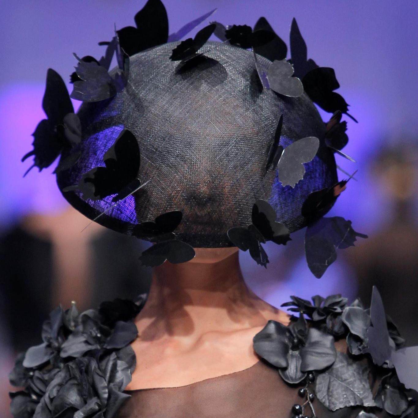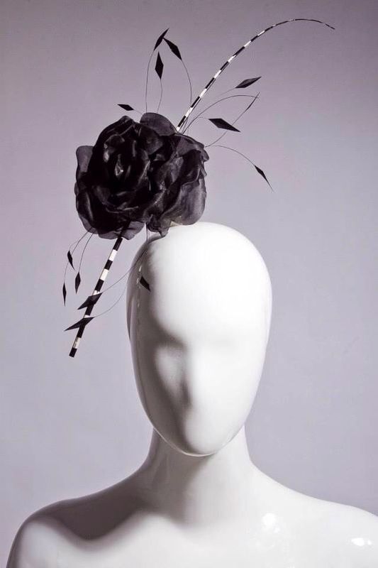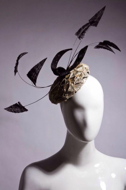 - Un tocado con aplicaciones de sinamay y otro trabajando el crin.