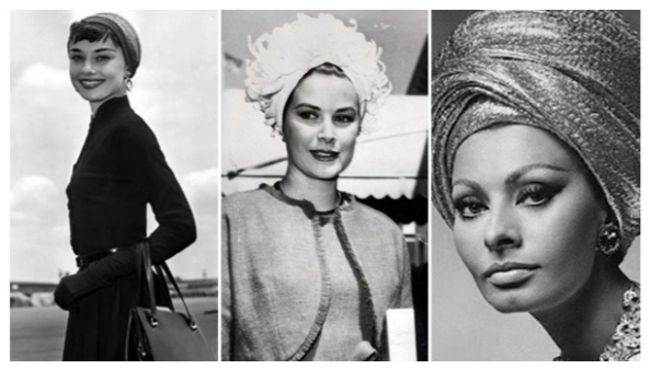 El Turbante: De origen Islámico e influencias exóticas, estuvo muy presente en los años 20, en los que se desarrolló el gusto por todo lo oriental y lo glamouroso. Utilizado sobre todo por la noche, se adornaba con detalles sofisticados.