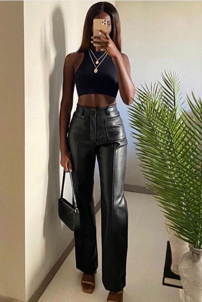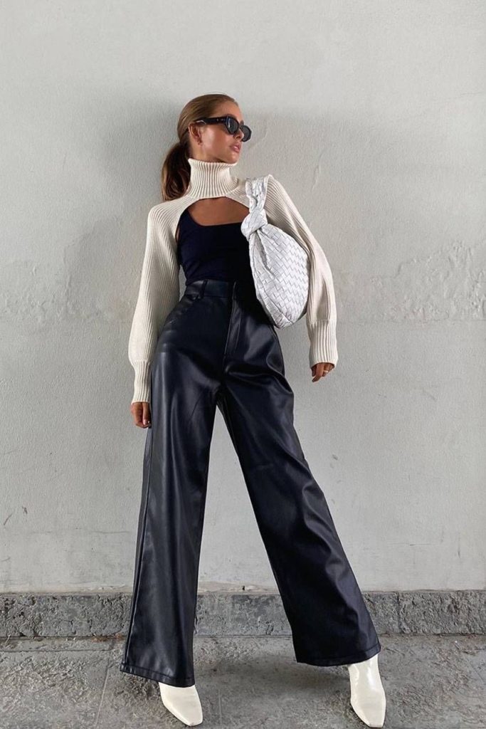 -Los pantalones con efecto piel sintéticos triunfan esta temporada aportando a un look moderno y chic; además de versatilidad ya que pueden combinarse de mil formas. Esta temporada podemos verlos en todas sus versiones, acampanados, pitillos, cortos…