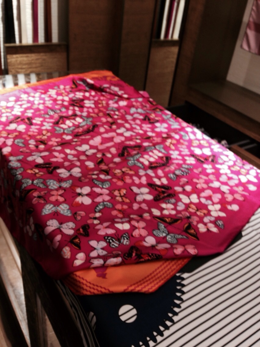Este es un pañuelo con estampado con mariposas, ya un clásico en el estilo de Loewe.